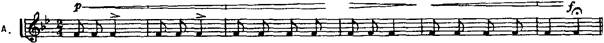 5. Характерная для украинской музыки (миксолидийский лад) IV повышенная ступень (ми бекар), которая добавляет остроты и игривости в характере произведения требует чистоты интонации, ощущения ладовой окраски произведения.