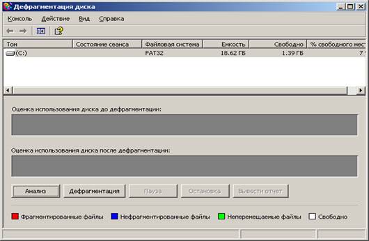 На рис.2 представлен внешний вид окна программы дефрагментации дисков, входящей в стандартную поставку Windows.