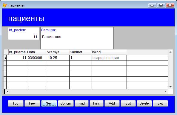 Рис. 1.7. Просмотр объектов зависящих от таблицы врачи