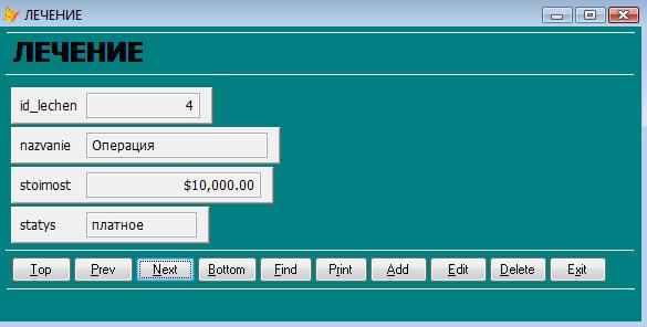 База данных создаётся для поддержки деятельности регистратуры больницы. БД должна содержать данные о пациентах, проведенном лечении, платных услугах, количестве мест в палатах и смертности.