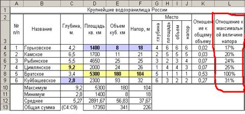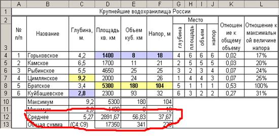 10.Выделить заливкой водохранилища, которые имеют максимальные и минимальные значения