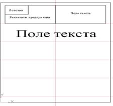 -Верхний блок листа выделен контурной линией толщиной не менее 3 пт, условно разделен на две части: реквизиты предприятия и изображение логотипа в верхнем левом углу и поле для текста (обращение);