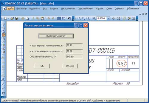 Расчет массы штампа в КОМПАС-Штамп 5.6