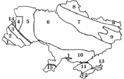 А Українські Карпати Б Західноукраїнська лісостепова В Середньоруська лісостепова Г Кримська південностепова |