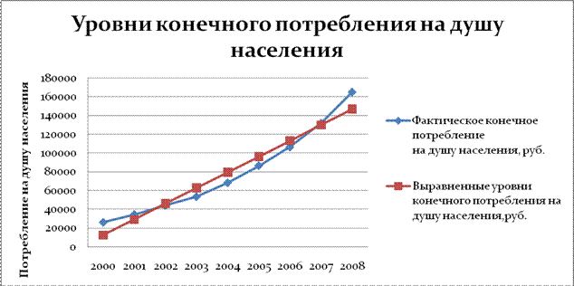 2.3.1 Выявление основной тенденции развития уровня индивидуального потребления методом аналитического выравнивания……36
