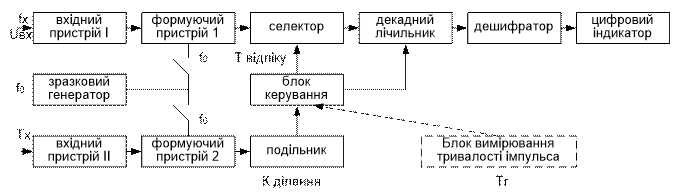 14. Вимірювання відношення частот електронним частотоміром. Похибки вимірювання. 24