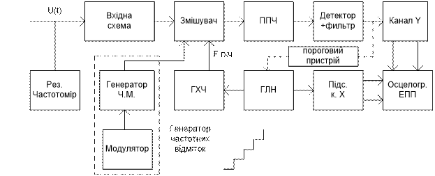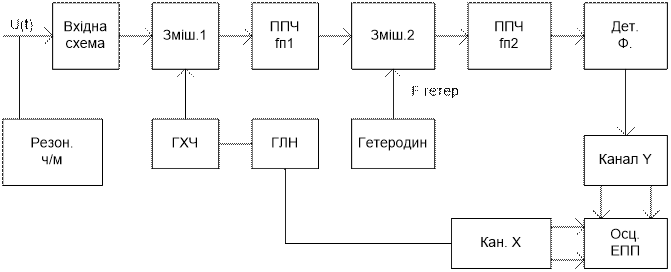 40. Спектроаналізатор послідовного типу. Робота по структурній схемі. 63