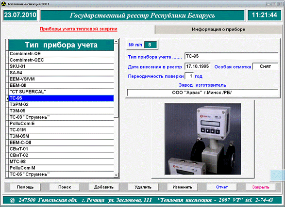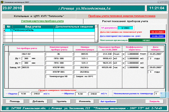 Рисунок 4.2.2.5. Подраздел базы данных КУП «Теплосеть» «Тепловая инспекция»: база данных приборов учета.