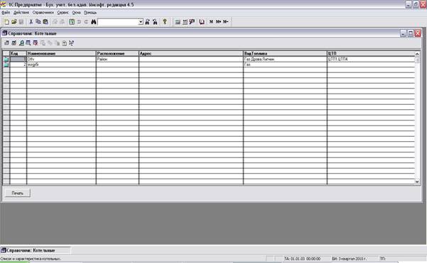 Рисунок 4.3.1.3. Работа со справочником Котельные информационной интеллектуальной системы FileReader с помощью 1С версии 7.7.