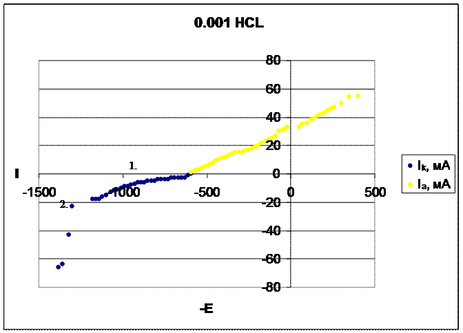 По полученным данным построили следующие поляризационные кривые: