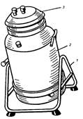 Рис.2. Бидон-охладитель: 1 - металлический каркас; 2 - комбинированный корпус; 3 - крышка с патрубками.