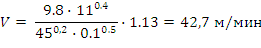 - скорость резанья, м/мин