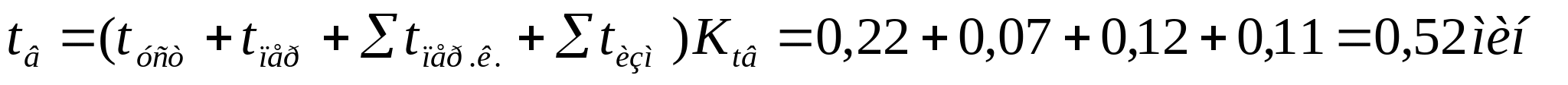 to=0,2 мин,tуст=0,22 мин,tпер=0,07 мин,tпер.к.=0,01+0,05+0,06=0,12 мин,tизм=0,11 мин. (Методические указания, приложения 7…11)  Время на обслуживание рабочего места: tобс =2% tопер tобс =( tо+ tв)2/100=(0,2+0,52)2/100=0,0144 мин. (приложения 7…11) Время на отдых и личные надобности: tотд =3,5% tопер tотд =( tо+ tв)3,5/100=(0,2+0,52)3,5/100=0,0252 мин. (приложения 7…11) Штучное время:
