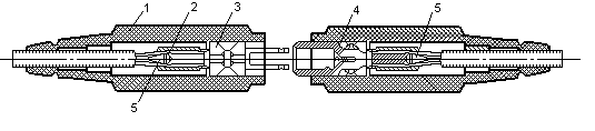 1-резиновая изоляция; 2- гайка; 3,4 – вставки; 5- конус