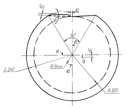 В направлении стрелок 1, 2 и R
