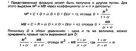 1 Коэффициент — называется банковским мультипликатором, или мультипликатором денежной экспансии.