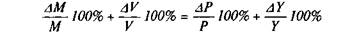 Уравнение обмена может быть представлено в темповой записи (для небольших изменений входящих в него величин):