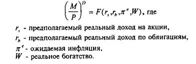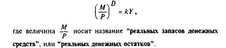 Оставляя в стороне наиболее сложный и противоречивый фактор - скорость обращения денег, по поводу которого отсутствует единство во взглядах среди экономистов, мы можем представить функцию спроса на реальные денежные остатки следующим образом: