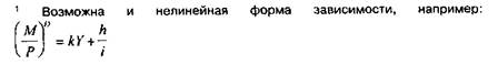 Приведенное выше уравнение количественной теории MV=PY называется уравнением Фишера. Используется и другая форма этого уравнения, так называемое кембриджское уравнение: M=kPY. Коэффициент k, однако, несет и собственную смысловую нагрузку, показывая долю номинальных денежных остатков (М) в доходе (PY). Строго говоря, величины У и k связаны с движением ставки процента1