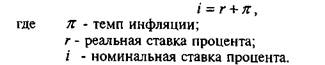 В функции спроса на деньги используется номинальная ставка процента. Это ставка, назначаемая банками по кредитным операциям. Реальная ставка процента отражает реальную покупательную способность дохода, полученного в виде процента. Связь номинальной и реальной ставки процента описывается уравнением Фишера: