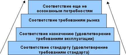 В японских системах управления качеством впервые была использована четырехуровневая иерархия качества, в которой угадывается основной принцип будущей концепции — ориентации на удовлетворение текущих и потенциальных запросов потребителей. Эта структура выглядела следующим образом: