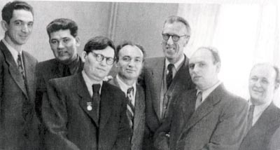 |  На пленуме Союза композиторов Татарии. Начало 60-х годов. Слева направо: Л. Афанасьев (Москва), Х. Ахметов (Башкирия), Ф. Лукин (Чувашия), Н. Жиганов (Татария), Д. Кабалевский (Москва), А. Леман и Дж. Файзи (Татария).