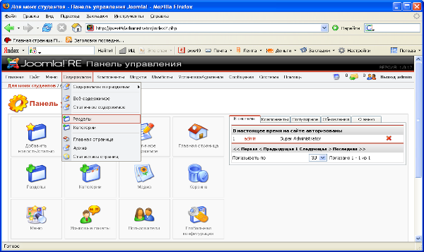 Рассмотрим основные принципы (операции) работы с CMS Joomla!