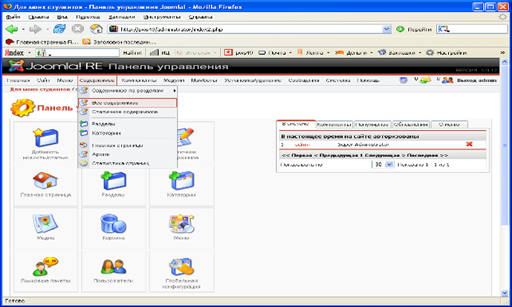 Рис. 10 – Доступ к странице «Управление содержимым»