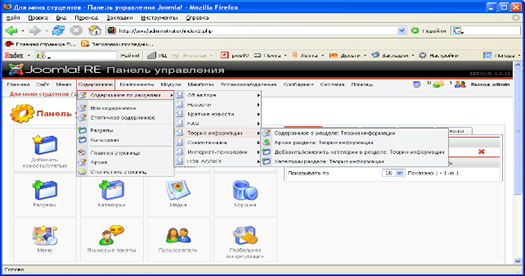 Рис. 11 – Страница «Управление содержимым»