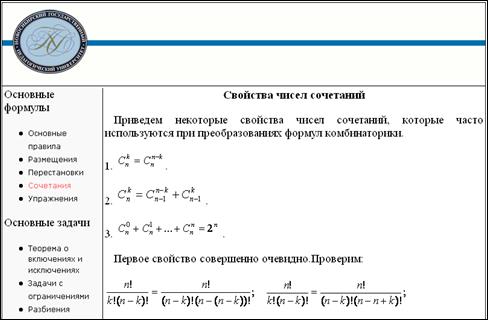 В теоретической части рассматриваются такие основные элементы классической комбинаторики как размещения, перестановки и сочетания, а также основные правила комбинаторики и свойства сочетаний.