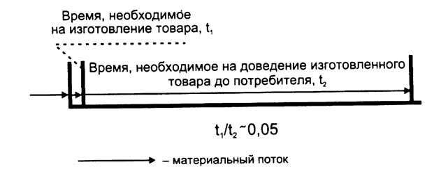 Рис. 10. Соотношение времени на собственно производство товара (t1