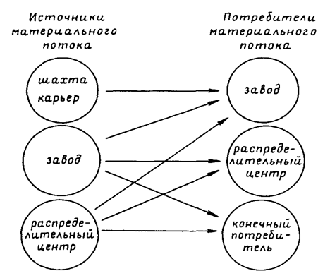 Рис. 1. Варианты поступления материального потока в систему потребления
