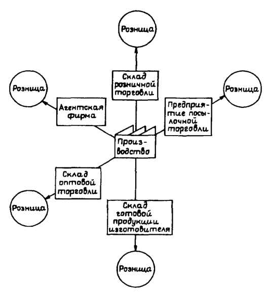 Рис.3.Различные варианты каналов распределения изделий народного потребления.
