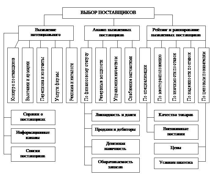 Планирование и проведение деятельности по закупке и поставке начинается с выбора соответствующих данной заявке поставщиков. Выявление и изучение источников закупки и поставки не является разовым мероприятием, а должно проводиться систематически, базируясь на различных источниках информации.