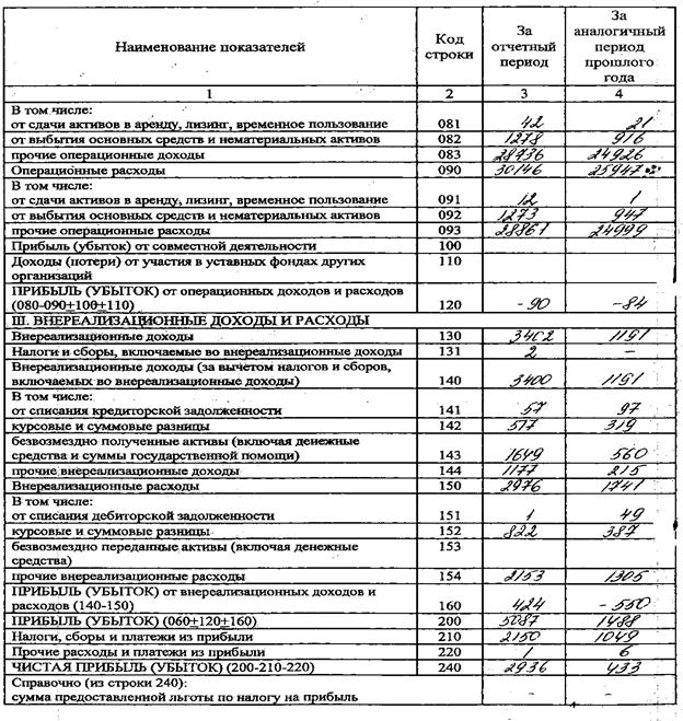 Форма №2 «Отчет о прибылях и убытках» за 2009 год, в млн. руб.