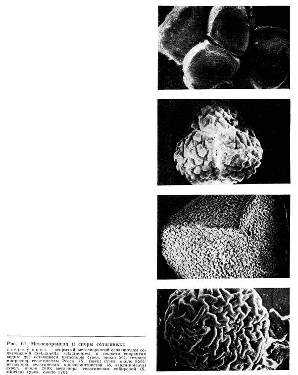 У большинства видов как мегаспорофиллы с мегаспорангиями, так и микроспорофиллы с микроспорангиями находятся в одном и том же стробиле, при этом первые обычно занимают нижнюю, а вторые – верхнюю его часть, реже они располапфются вдоль оси стробила двумя вертикальными рядами или, наконец, размещены без определенного порядка. Мегаспорангии обычно много крупнее микроспорангиев. Мега- и микроспоры, как правило, с трехлучевым тетрадным рубцом, с многослойной и сложно устроенной оболочкой, скульптура поверхности которой очень разнообразна и является хорошим диагностическим признаком. Диаметр микроспор в зависимости от вида варьирует от 20 до 100 мкм, мегаспор – от 100до 1,5 мм. Споры бывают беловатыми, желтоватыми, красноватыми, буроватыми и почти черными. Раскрывание спорангии происходит иногда столь резко, что микроспоры или тетрады микроспор выбрасываются на расстояние до 2 см, а мегаспоры – на расстояние до 10 см. далее споры рассеиваются ветром или водой.