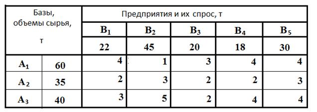 Рассмотрим принцип решения закрытой транспортной задачи (1 тип).