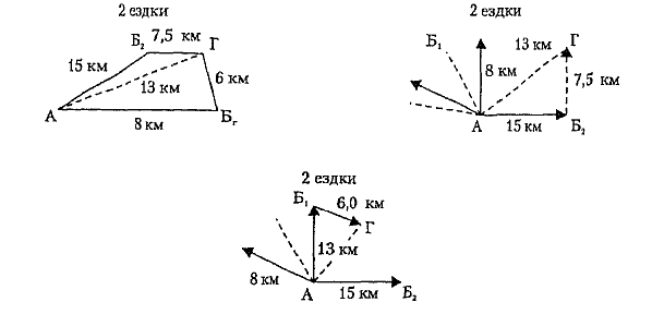, в который нужно сделать две ездки. Принимаем его последним пунктом маршрута А — Б2 - Г, т. е. получаем маршрут варианта II.
