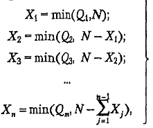 — количество автомобилей, работающих на маршрутах с последним пунктом разгрузки Бj