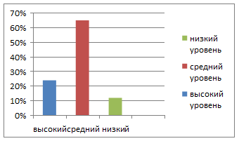Из диаграммы видно, что детей с низким уровнем сформированности вычислительных навыков- 12 %, со среднем уровнем - 65 %, с высоким - 24%.