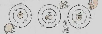 Выполняя подобное задание, дети отрабатывают прием сложения двузначных чисел с переходом через разряд и без перехода. Действуя строго по алгоритму, дети более прочно усваивают данные приемы, т.к. неверные вычисления приводят к неверному решению алгоритма, и значит решать придется сначала. Многократное повторение вычислительных действий способствует более прочному усвоению вычислительного приема.