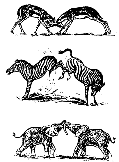 В период выбора половых партнеров в популяциях животных усиливаются конкурентные отношения. У многих животных возникают драки самцов, ритуальные демонстрации и другие типы специализированного поведения, которые направлены на устранение конкурентов (рис. 10.3).