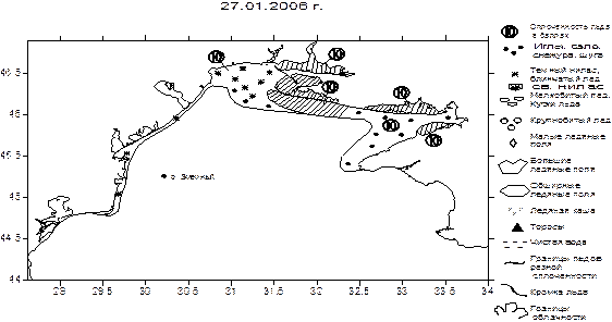 В районе о. Змеиный в зимы с наибольшей ледовитостью льды не наблюдались, рис. 2. В целом, этот регион можно отнести к районам с легкими ледовыми условиями.