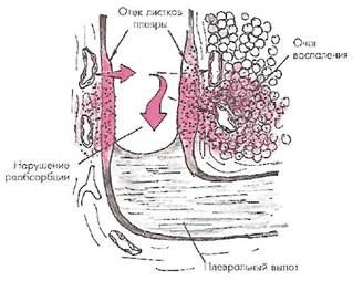 является нарушение соотношения скоростей секреции и всасывания плевральной жидкости, которое, в свою очередь, определяется уровнем гидростатического и онкотического давления в капиллярах обоих листков плевры, а также нарушением проницаемости сосудов и самой плевры.