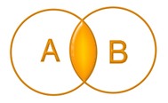 В алгебре множеств конъюнкции соответствует операция пересечения множеств, т.е. множеству получившемуся в результате умножения множеств А и В соответствует множество, состоящее из элементов, принадлежащих одновременно двум множествам.
