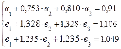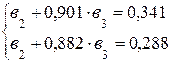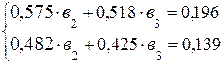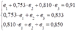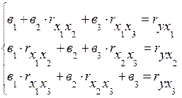 Решить систему нормальных уравнений – значит, найти численное значение коэффициентов регрессии , , . Все остальные параметры системы уравнений (коэффициенты парной корреляции) уже были вычислены на первом и втором этапах расчетов. Запишем эту же систему уравнений с численными значениями известных параметров: