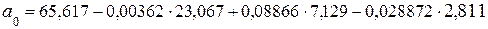В этом уравнении регрессии его свободный член является неизвестной величиной. Для определения численного значения необходимо в это уравнение подставить средние значения результирующей и факторных величин. Тогда уравнение примет вид: