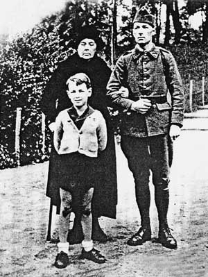 | Софья Федоровна Колчак с сыном Ростиславом (офицером франзузской армии) и внуком Александром. Франция, 1939 год
