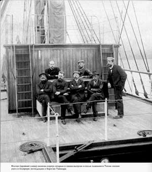 | Колчак (крайний слева) окончил корпус вторым в своем выпуске и, получив назначение на Тихий океан, отправился в полярную экспедицию к берегам Таймыра