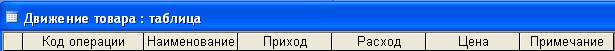 Код операции; Наименование товара; Приход; Расход; Цена; Примечание